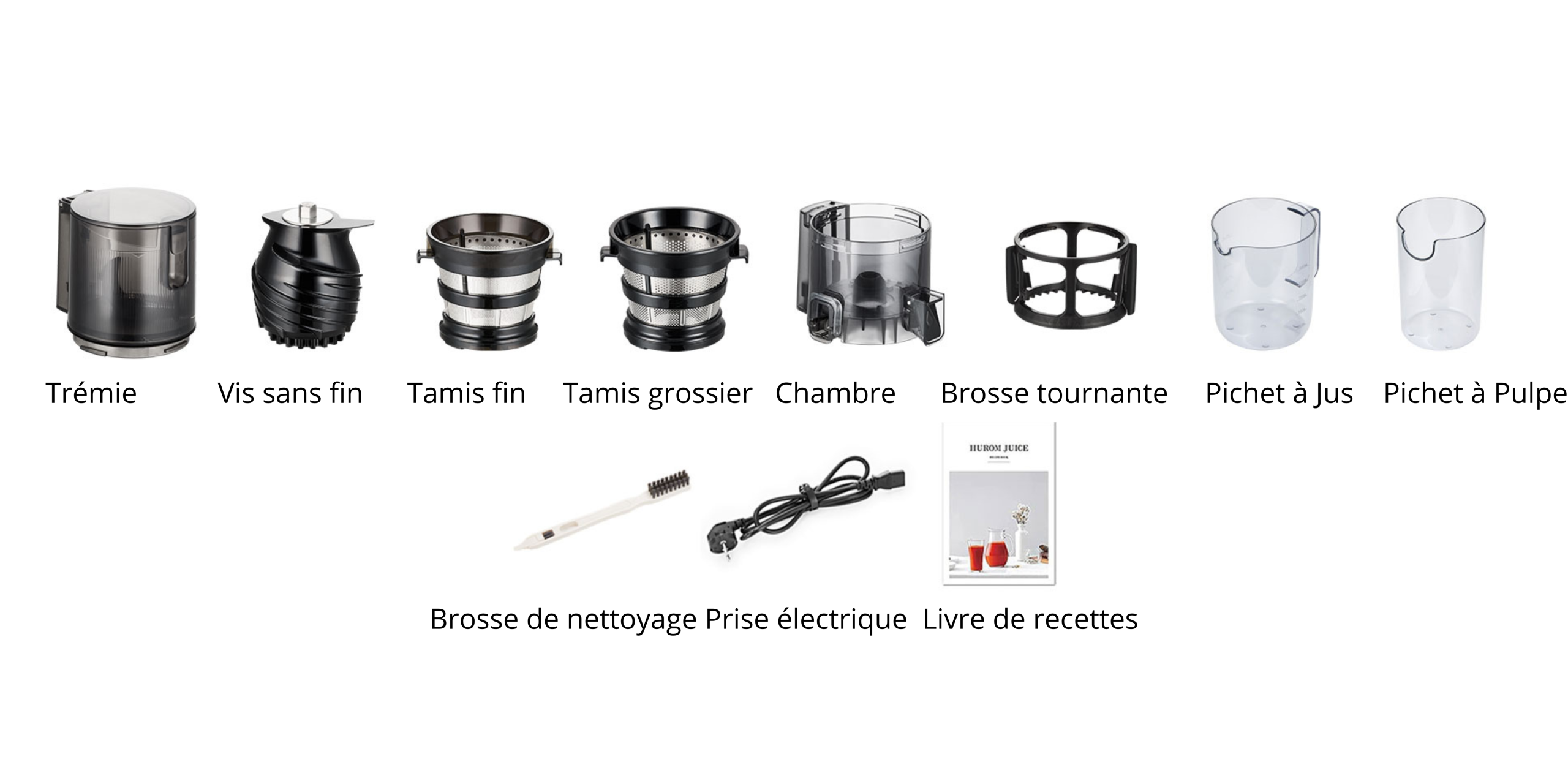 | Modèle léger et compact 2 Filtres pour un jus de qualité 10 ans de garantie | Pas de kit sorbet |